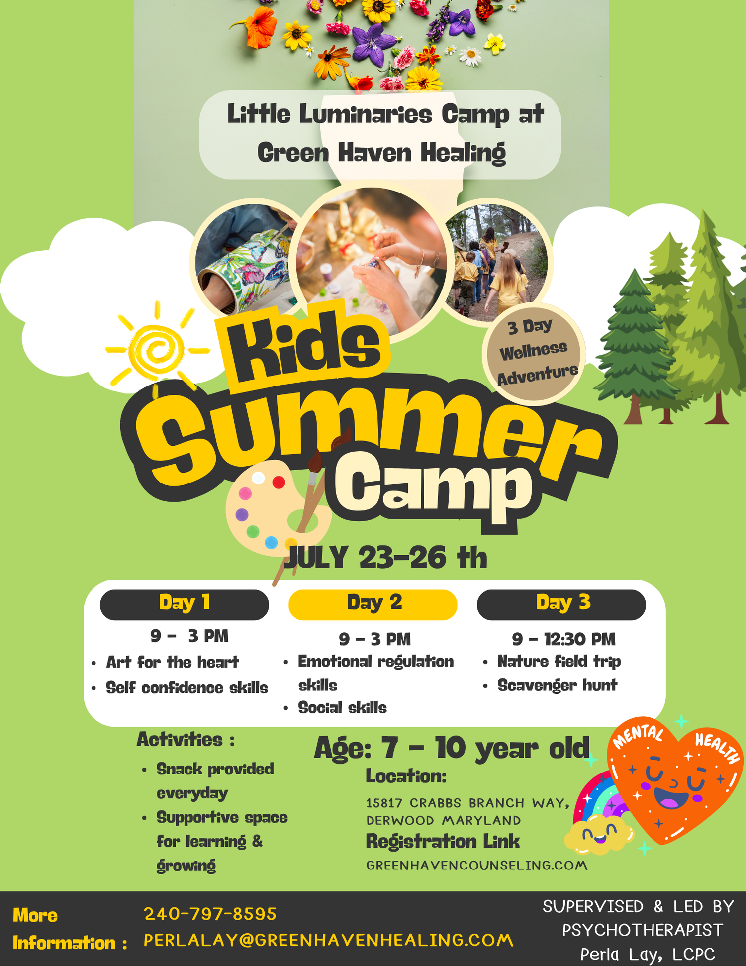 Hello my name is Perla Lay and I am an LCPC and the owner of Green Haven. I created this practice to serve people in a holistic way that helps their mind, body, and soul connect with nature. My goal is to offer a therapeutic experience that encourages personal growth and healing through connection with the natural world.